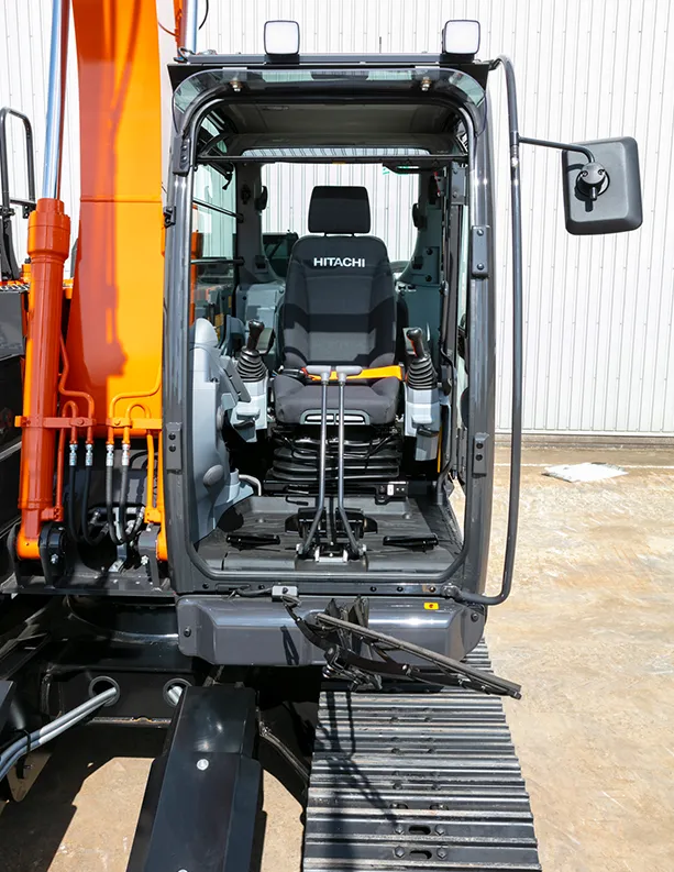 - Wide visibility glass panels and camera systems enhance awareness on busy job sites.
