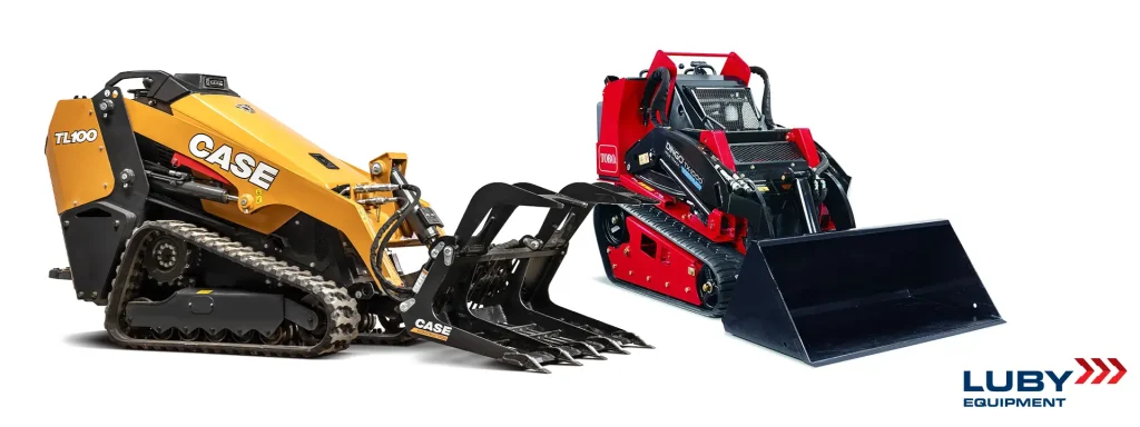The Toro Dingo TX1000 is one of the most recognized mini track loaders in landscaping. But the CASE TL100 offers a comparable stand-on track loader option designed for the same types of jobs.