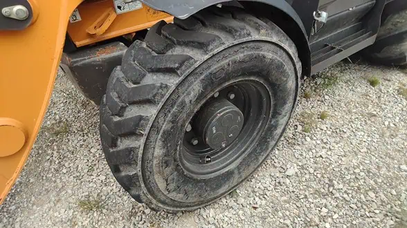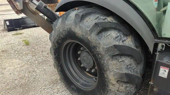 - Front axle options include 2WD with 11.0 L x 16.0 tires or 4WD mechanically driven front axle with 12.0 L x 16.5 tires, including a drive shaft guard.