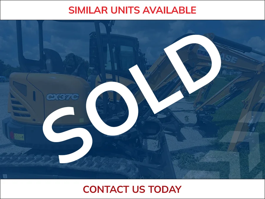 2024 CASE CX37C Mini Excavator – Cab, Rubber Tracks, Two Speed, Joystick Controls, Long Arm with Thumb Bracket, LED Beacon, Additional Counterweight, Standard Dozer Blade, Travel Alarm