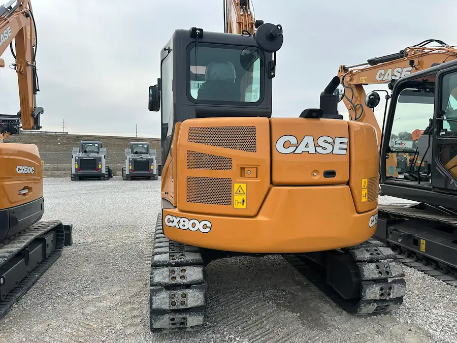 2024 CASE CX80C mid-sized excavator, now In-Stock at Luby Equipment – Chassis with Dozer, Standard Boom, 7’2″ (2.19 M) Arm, 18″(450mm) Bolt-on Rubber Track, ISO/SAE Control Pattern Select, Rear View Camera