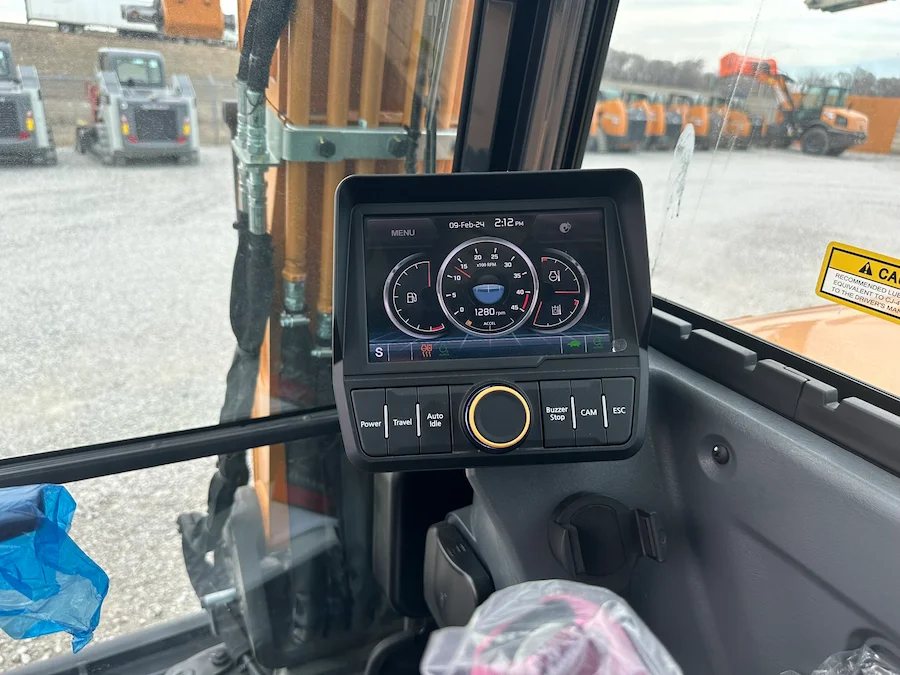 3. Comfort and Visibility: Equipped with a state-of-the-art 7-inch full-color monitor, operators can stay informed about machine performance and diagnostics in real-time, enhancing overall efficiency and safety. The spacious cab offers 16% more glass for improved visibility, while amenities such as ergonomic controls, automatic climate control, and ample legroom ensure unparalleled operator comfort during extended work hours.
