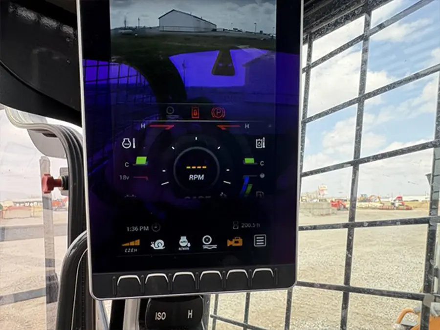 This machine is equipped with a fully enclosed cab with HVAC and 2 speed EH controls for smooth, precise operation. High flow auxiliary hydraulics allow operators to run demanding attachments, while the hydraulic quick coupler makes attachment changes fast and efficient. Ride control improves material retention and travel comfort, and the premium LCD display provides clear machine information at a glance.