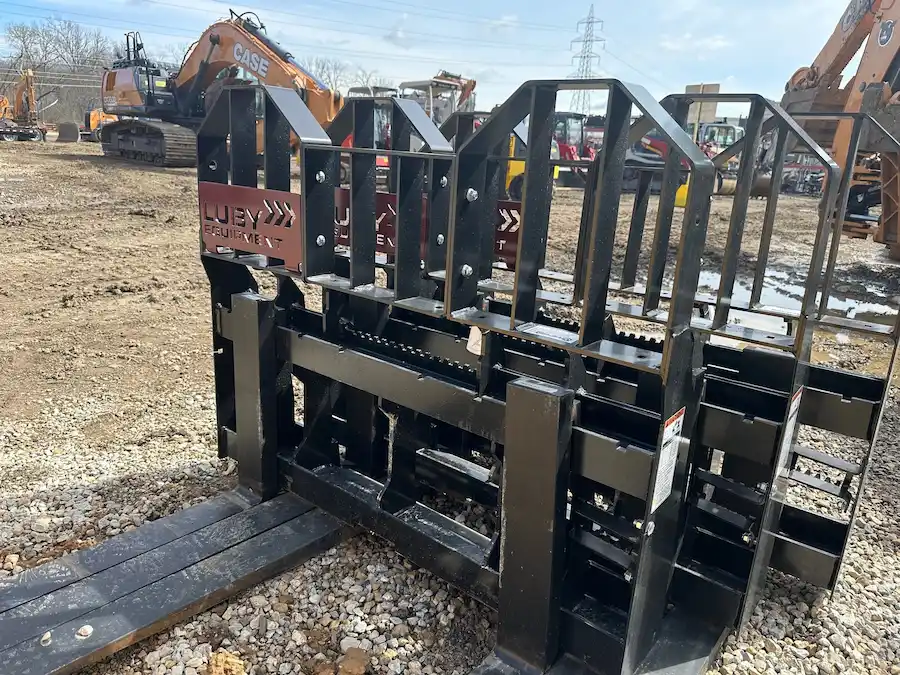 Enhance your material handling capabilities with 48″ Virnig Wide Rail Pallet Forks – 6200 lbs capacity, available in-stock at Luby Equipment. The heavy-duty frame and rail construction guarantee durability, making them suitable for even the most demanding tasks.
