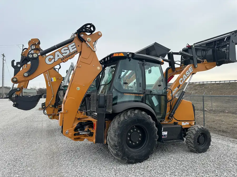 The backhoe unit offers both 1-way and 1-way/2-way auxiliary hydraulics, accommodating a wide range of attachments such as hammers, plate compactors, thumbs, augers, and more. The Extendahoe® feature provides extended reach and digging capability. Control is precise and effortless with two-lever backhoe controls, a pilot-operated control system, fingertip proportional Electro-Hydraulic stabilizer controls, and thumb-operated auxiliary hydraulic control. Operators can effortlessly switch between “excavator to backhoe” control patterns from within the cab. The stabilizer pads are flip-over for easy conversion, and a CASE mechanical quick coupler along with a universal coupler compatible with CAT/Deere attachments enhances versatility. The hydraulic thumb, compatible with 18 in & 24 in buckets, further extends the backhoe’s functionality.