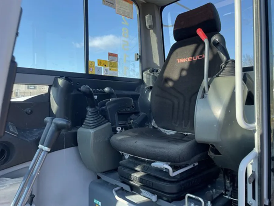 The operator’s station in the TB290 is a testament to Takeuchi’s commitment to comfort and functionality. It Features an automotive-styled interior with an automatic climate control system, rearview camera, and a 5.7″ color multi-informational display; operators are kept in command and comfortable throughout the workday. Adjustable armrests, a deluxe high-back suspension seat, and multiple safety belt options underscore the focus on operator well-being.