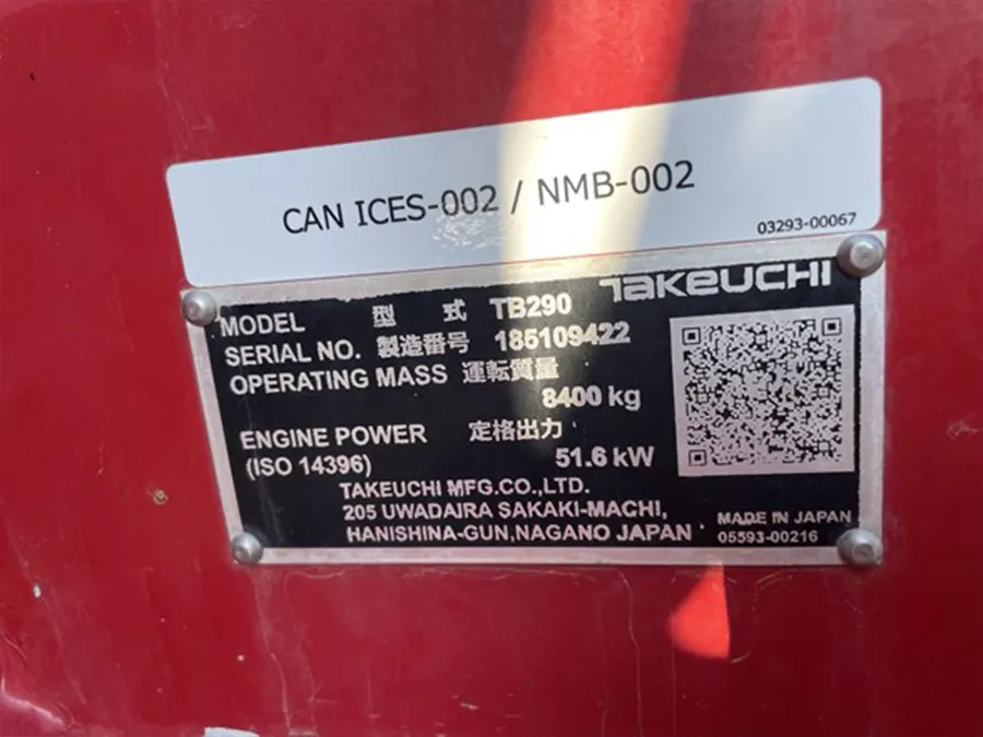 Compact Excavator Takeuchi TB290 – EQ0028511