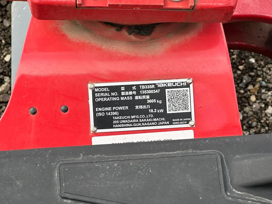 - Environmental Compliance: With U.S. EPA Final Tier 4 and EU Stage 5 emission standards, the TB335R demonstrates Takeuchi’s dedication to environmental stewardship while maintaining robust performance.