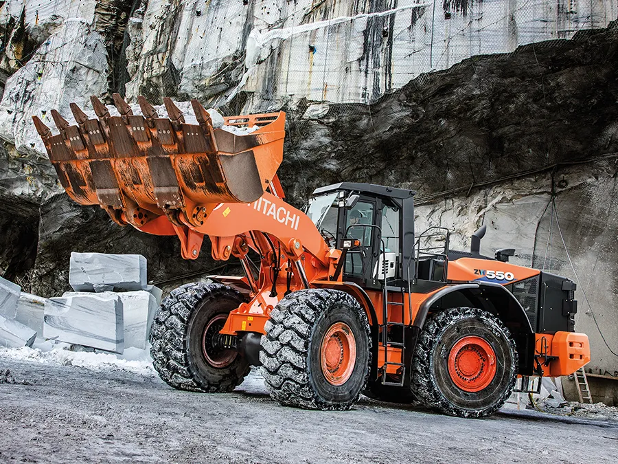Hitachi wheel loader ZW550-6 built for large-scale aggregates, mining, and heavy production loading.
